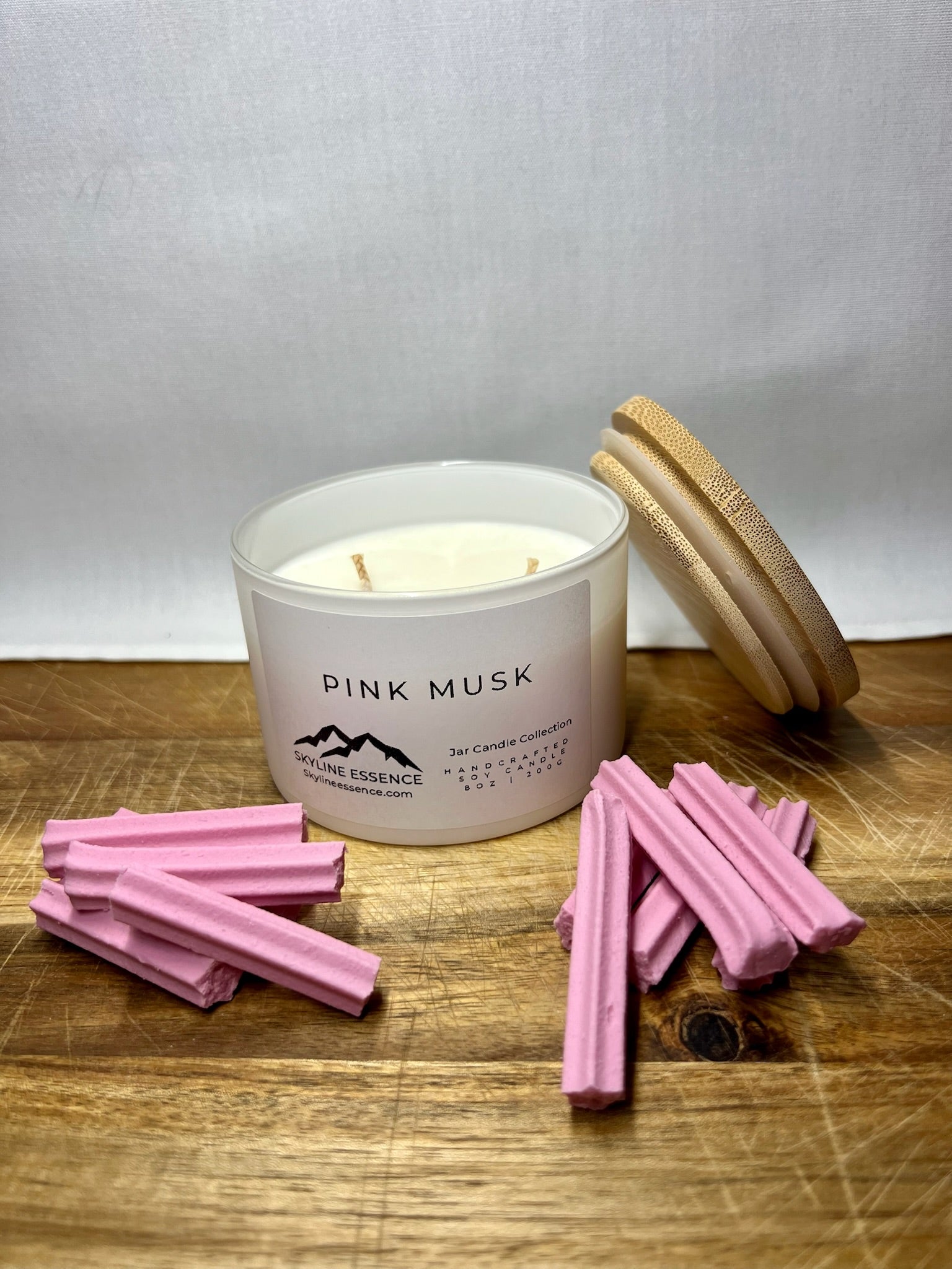 Elevate your space with our handcrafted soy wax candles, created to bring a warm and inviting sensory experience. Enjoy the soft, floral scent of Pink Musk, while our eco-friendly soy wax provides a clean, long-lasting burn. Thoughtfully made to enhance both mood and atmosphere, these candles add comfort and charm to any space.